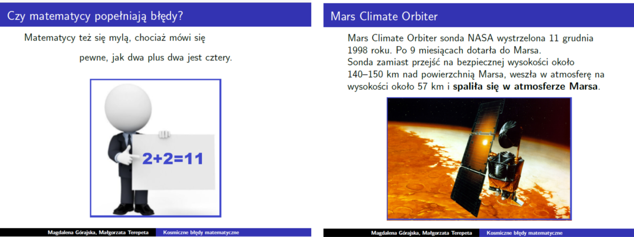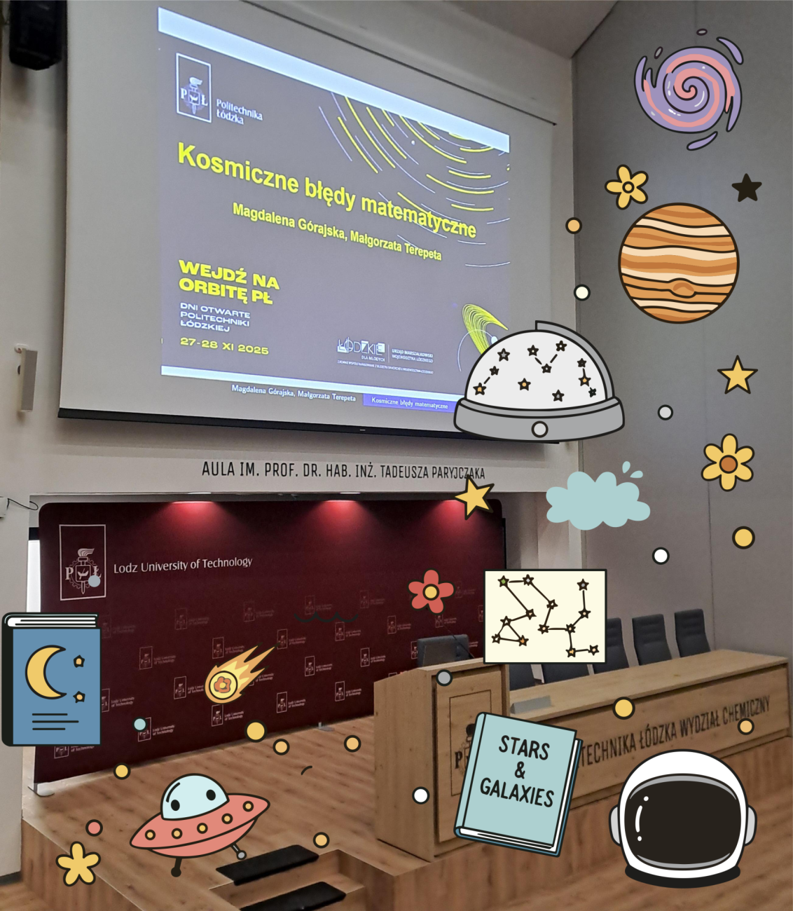 28 listopada na Politechnice Łódzkiej odbył się Dzień Otwarty pod hasłem „Wejdź na orbitę”. W auli im. prof. Józefa Parajczyka w budynku Alchemium dr Magdalena Górajska zaprezentowała wykład Kosmiczne błędy matematyczne, przygotowany wspólnie z dr Małgorzatą Terepetą. Wystąpienie przybliżyło uczestnikom, jak pozornie drobne pomyłki potrafią prowadzić do zaskakujących, a czasem spektakularnych konsekwencji.